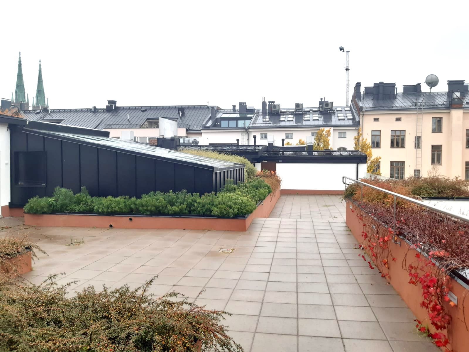 Taloyhtiössä on sauna, pesutupa, ulkoiluvälinevarasto sekä kattoterassi.